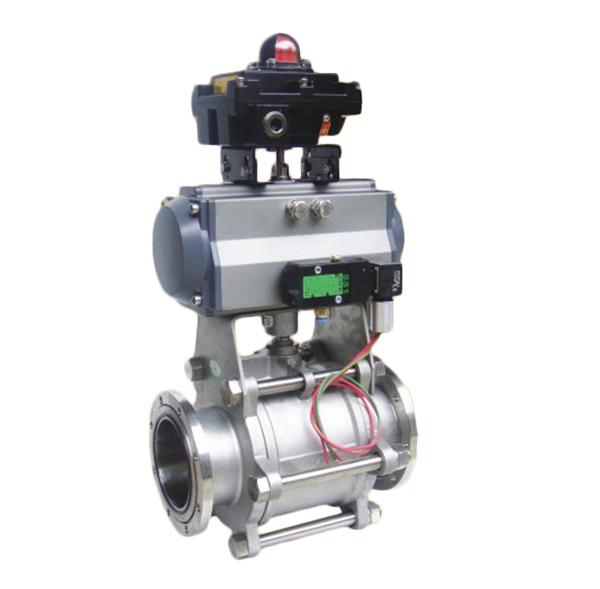 通過電磁換向閥改變氣路方向,控制執行氣缸來驅動球閥,以角行程輸出扭矩來驅動球閥作啟閉運動。